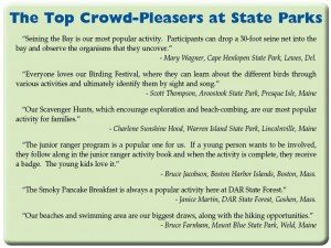 Charlene Sunshine Hood, park manager II at Warren Island State Park in Lincolnville, Maine, said that crabbing is a big draw for the park. “Both children and adults come here and just spend hours upon hours going crabbing. It is great fun for everyone. Our guests collect the crabs and then they can either cook them up or have a big crab race on the boat,” said Hood. “It is a wonderful time and creates a perfect photo opportunity.”